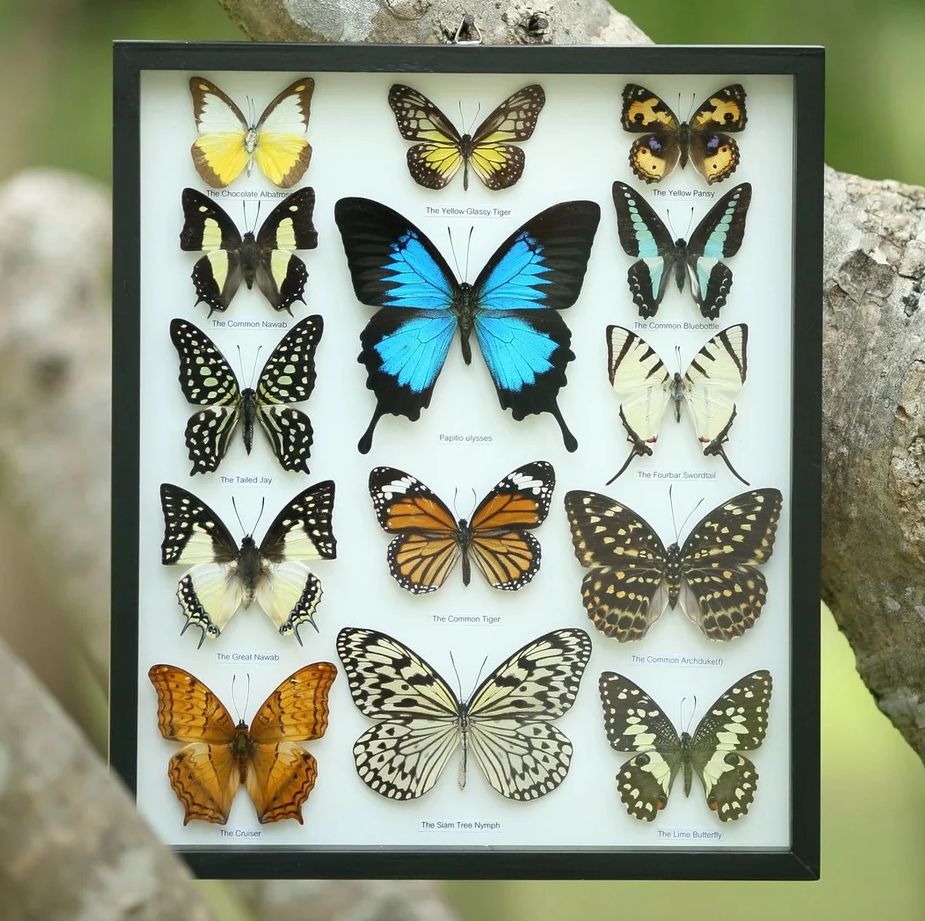 All of the entomology specimens we offer have been sourced ethically from our network of insect lovers worldwide. We work with butterfly breeders, insect collectors, and entomologists worldwide. We stock an ever-evolving catalog of unique specimens including the finest quality dry-preserved Lepidoptera, Coleoptera, and other Arthropods. Thank you for supporting our shop.. Joe, May, Pi, Florence & Lucinda.
