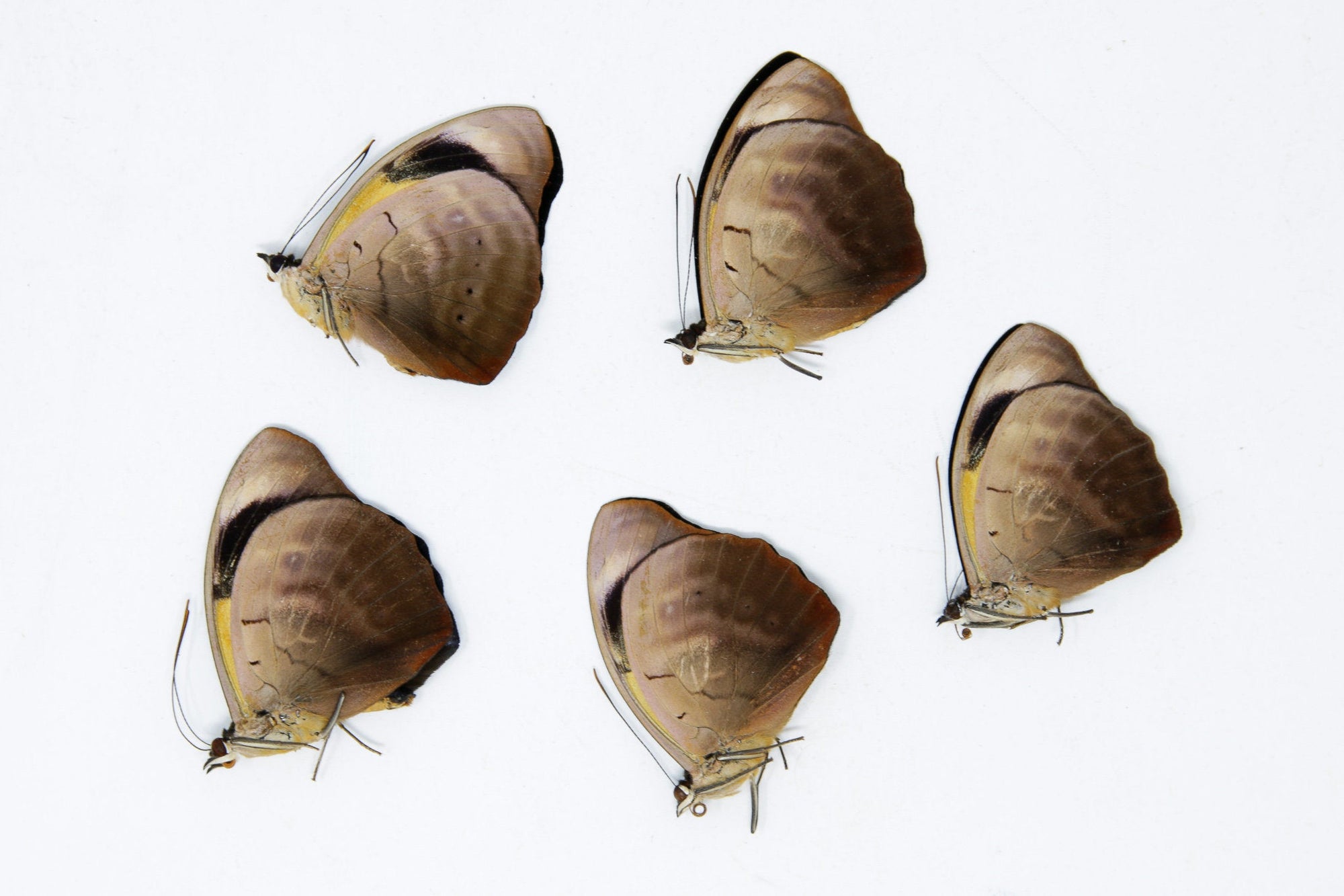 Dry-preserved, unmounted and dehydrated butterfly specimens.