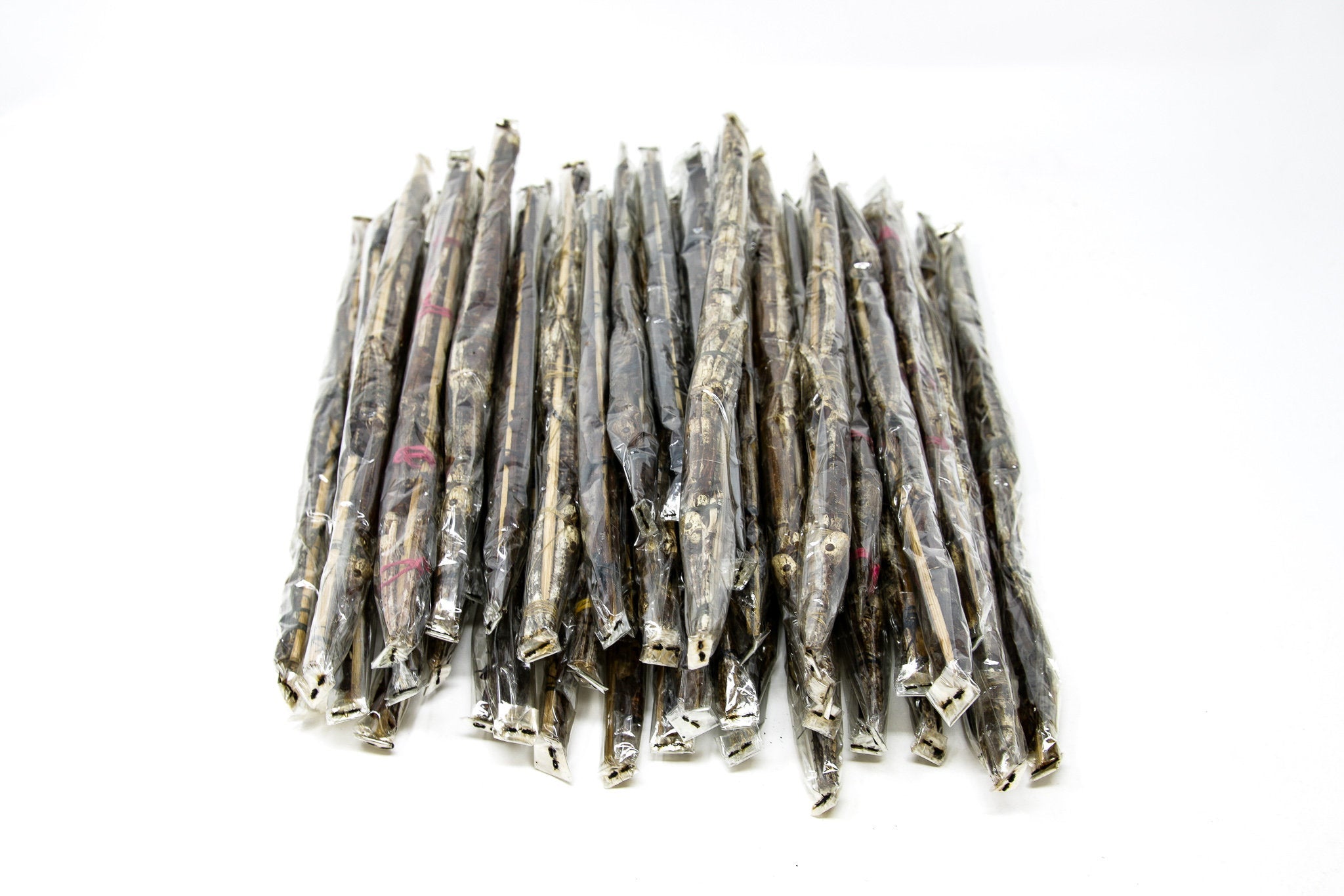 ♀ Giant stick insects, secured on a bamboo pole and wrapped.