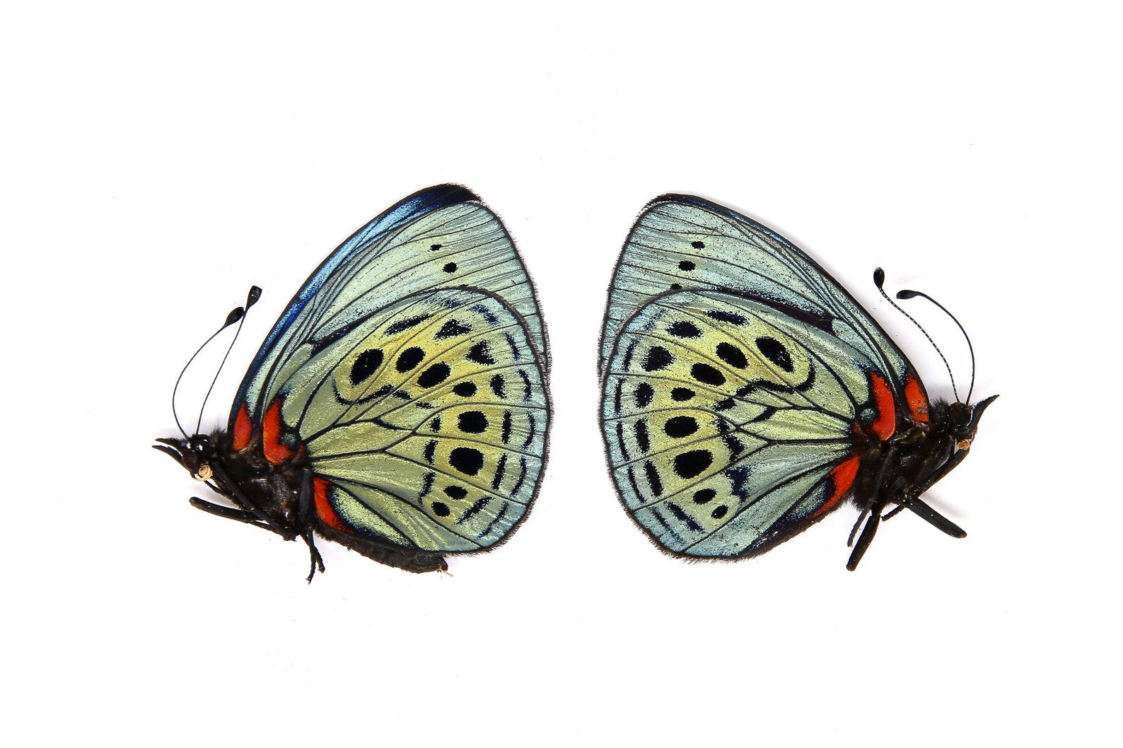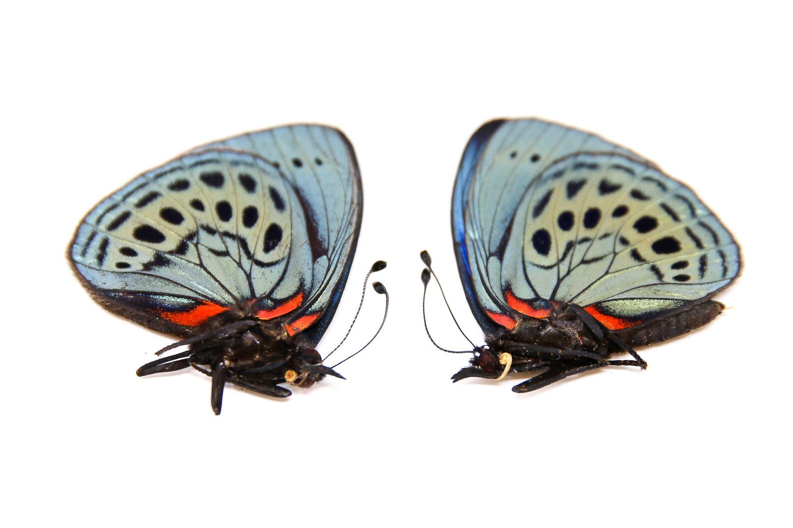 TWO (2) Papilio ulysses | A1 Unmounted Blue Swa...