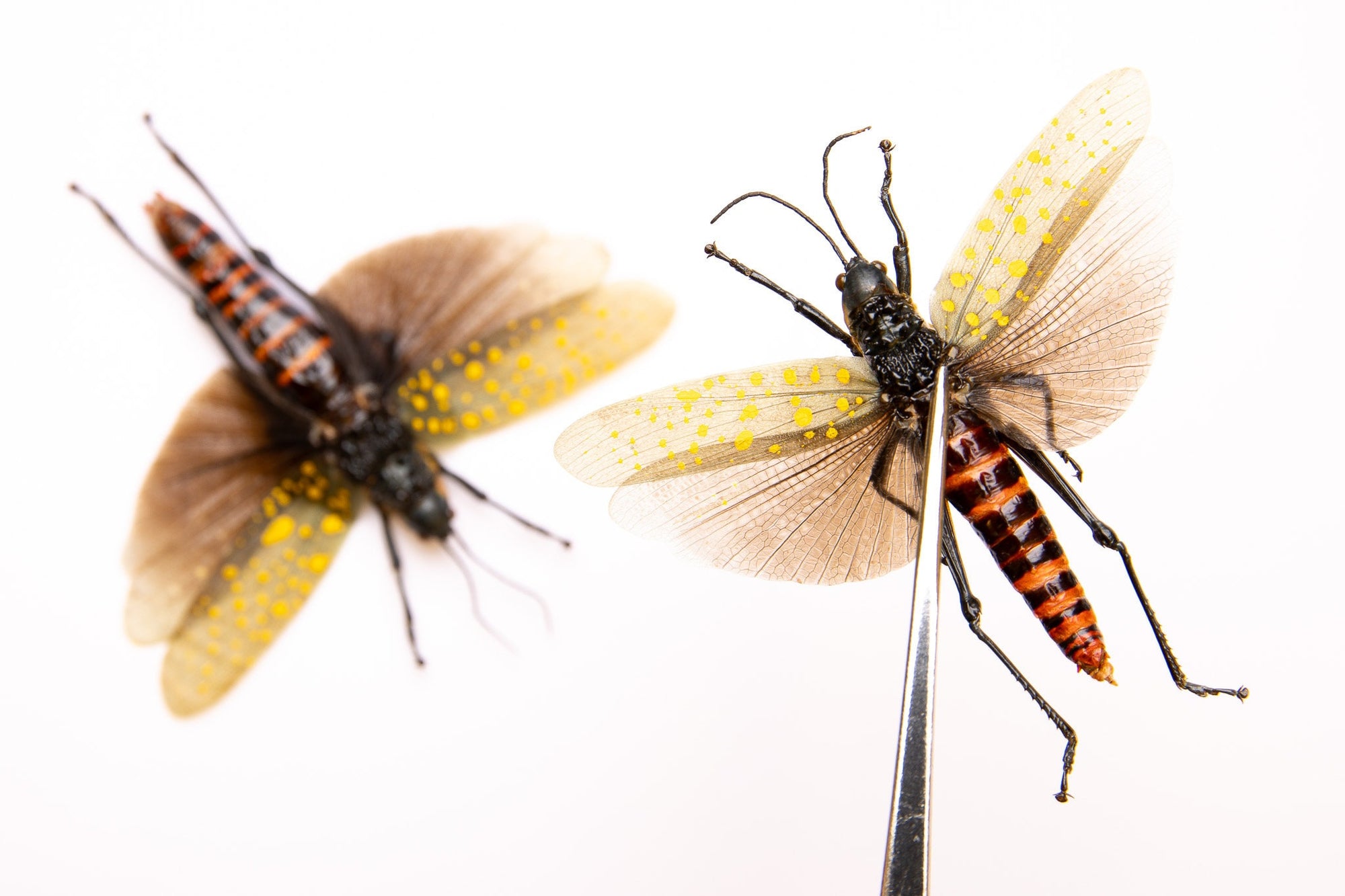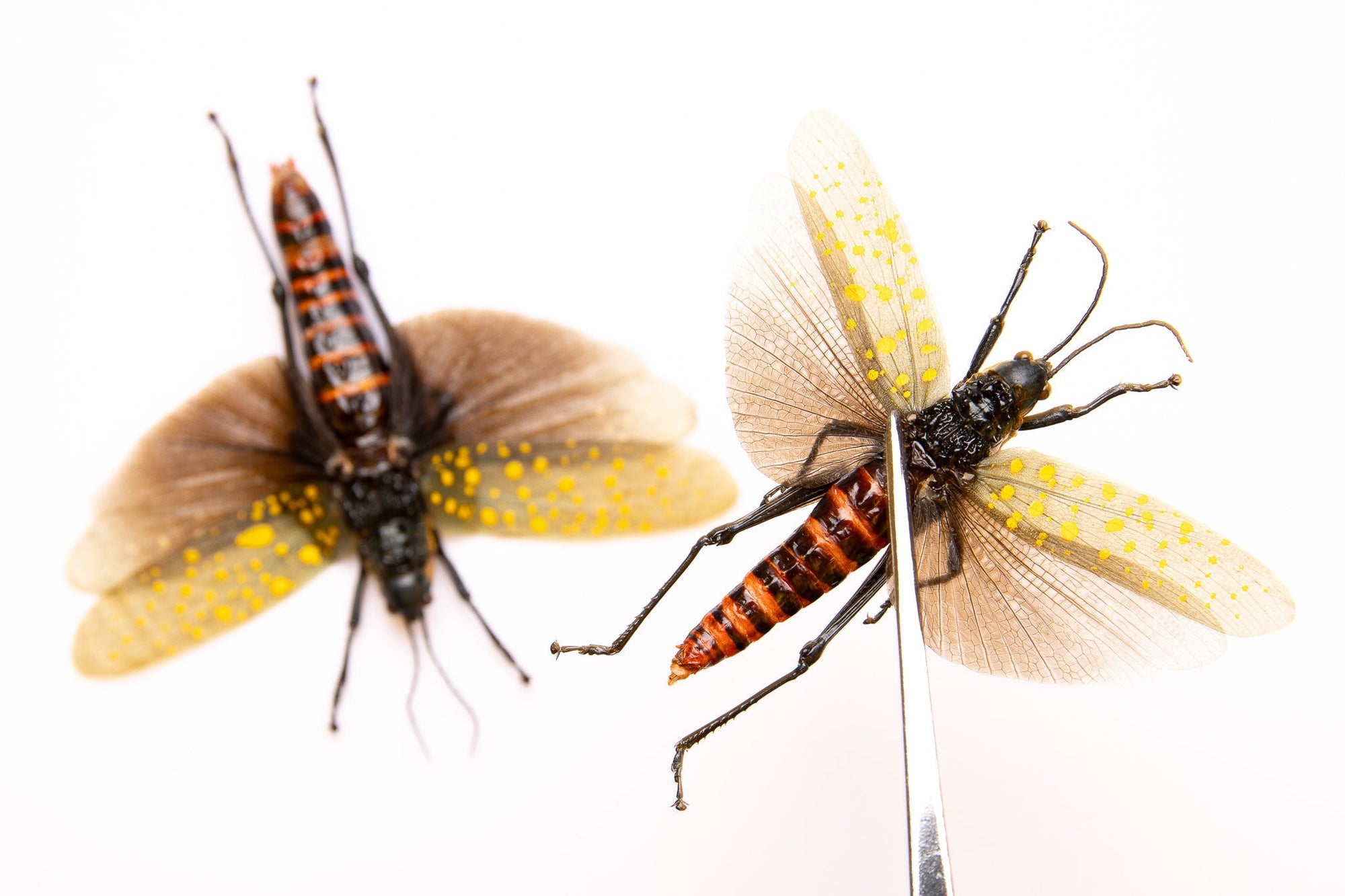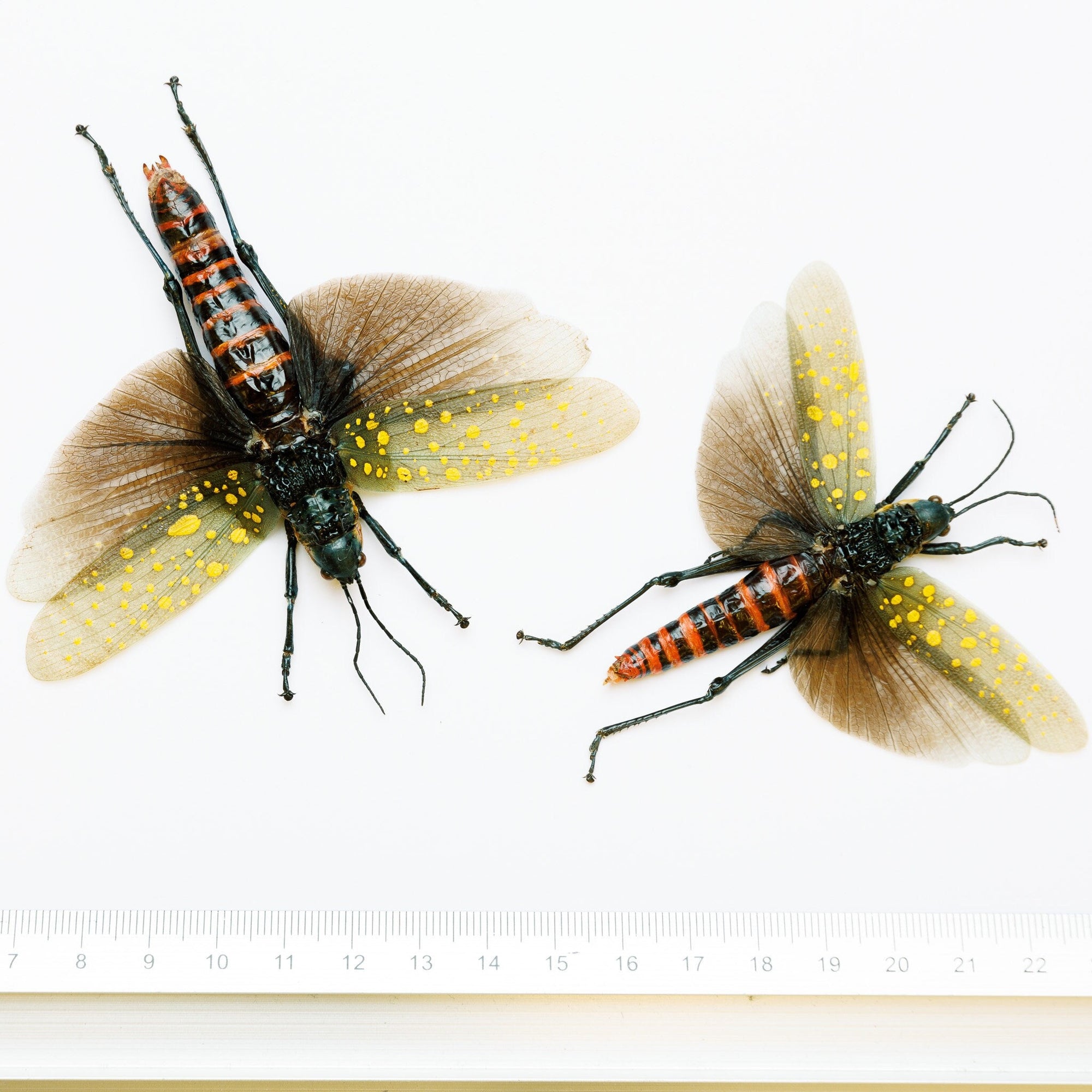 LOT OF 10 SPREAD Grasshoppers (Aularches punctatus) A1 Entomology Specimens
