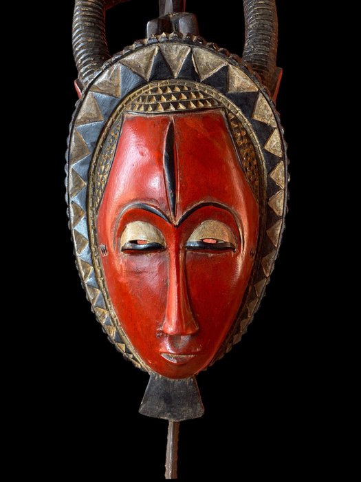 Baoulé masks are known in African art for the delicacy of their features, a mouth held forward, and half-closed eyes.