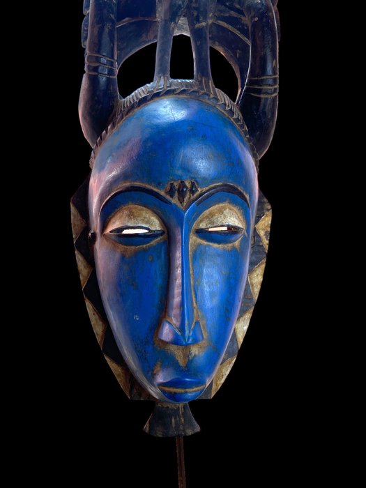 African Yaouré mask with a hornbill on its head. The hornbill symbolizes teaching and protection. Their main function is the protection of the person who wears it, especially against witchcraft.