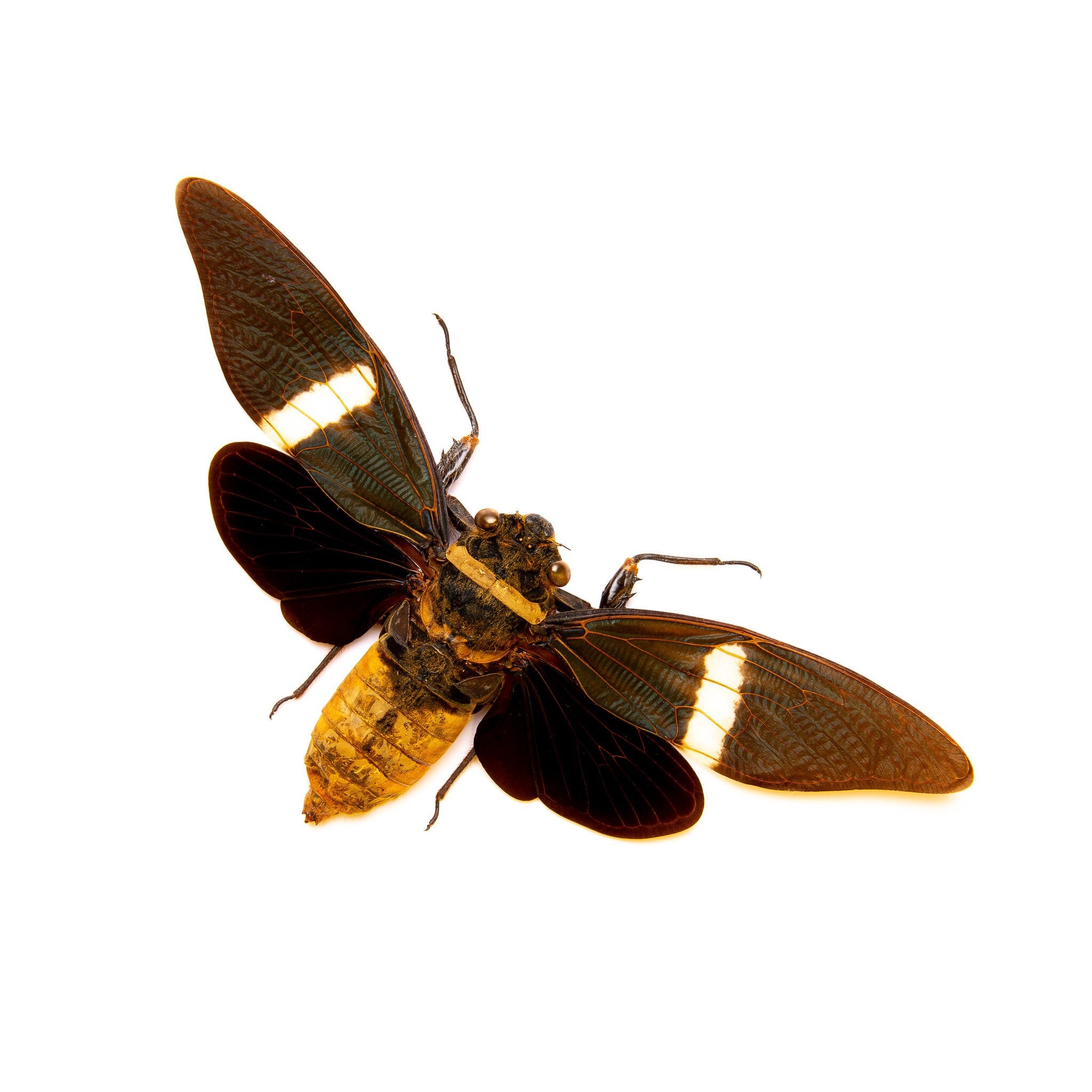 TWO (2) Tosena fasciata, CICADAS 4.5-5 Inch Wingspan, A1 Real Entomology Spread Specimens